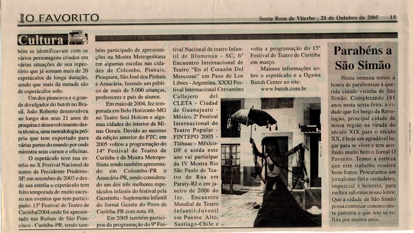 Em 2005 voltou a programação do 14º Festival de Teatro de Curitiba e da Mostra Metropolitana sendo também apresentado em Colombo-PR e Araucária-PR, foi considerado um dos três melhores espetáculos infantis do festival pela Gazetinha – Suplemento Infantil do Jornal Gazeta do Povo de Curitiba-PR com nota 10. Também participou do 9º Festival Nacional de Teatro Infantil de Blumenau – SC, 6º Encuentro Internacional de Teatro “En el Corazón Del Mercosur” na Argentina, XXXI Festival Internacional Cervantino Callejero em Guanajuato – México, 2º Festival Internacional de Teatro Popular na Cidade do México, IV Mostra Rio São Paulo de Teatro de Rua em Paraty-RJ.
