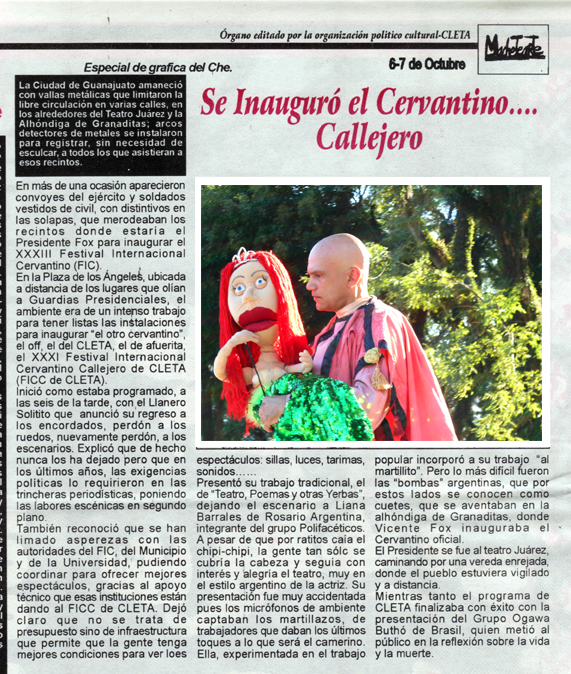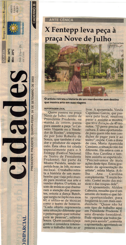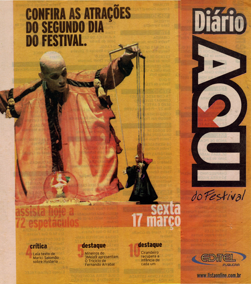 Premiere: X Festival Nacional de Teatro de Presidente Prudente-SP-Brasil – Setembro de 2003.